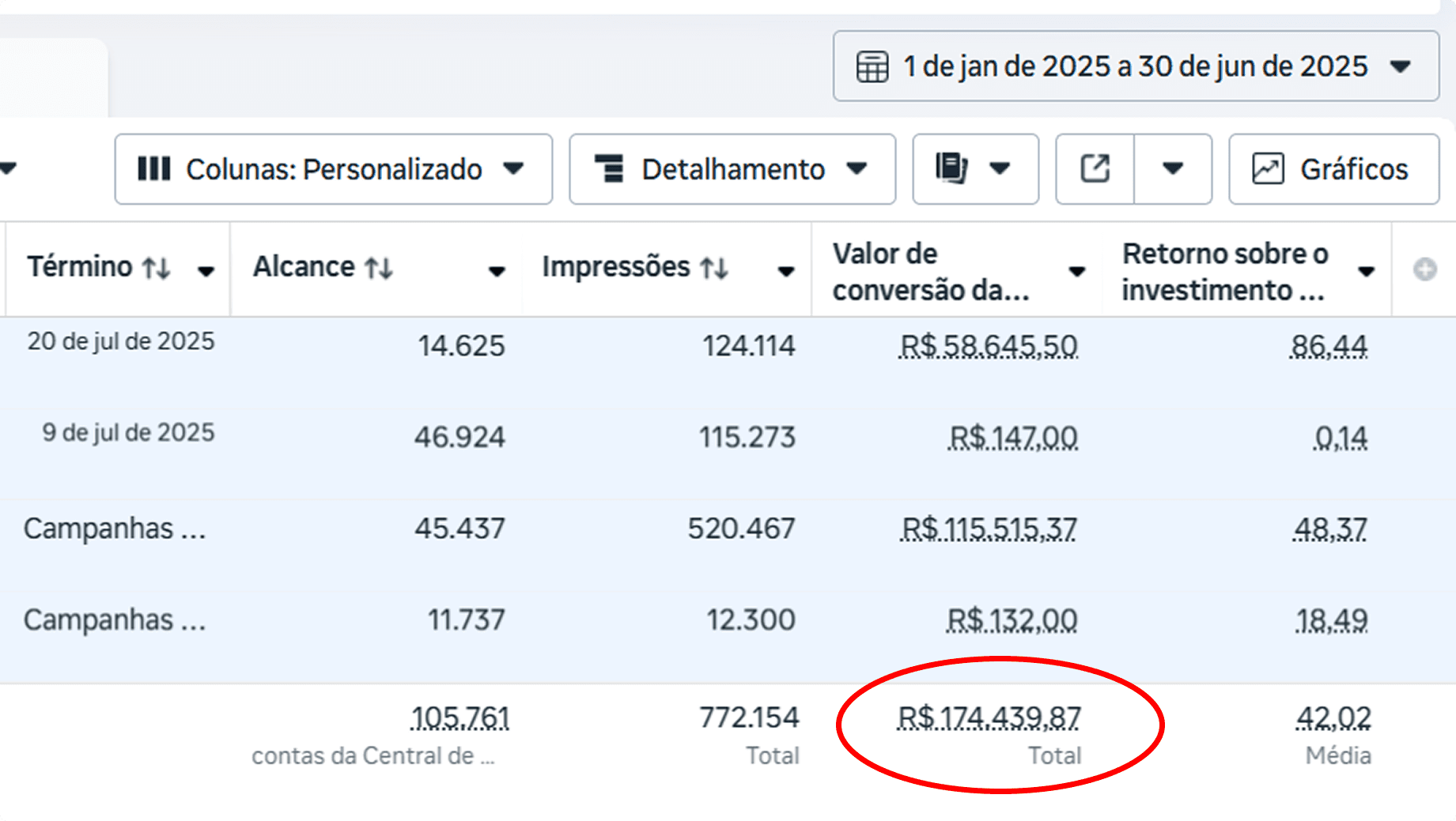 Momento que aumentamos consideravelmente as vendas, trazendo alcance para os anúncios que mais funcionaram.